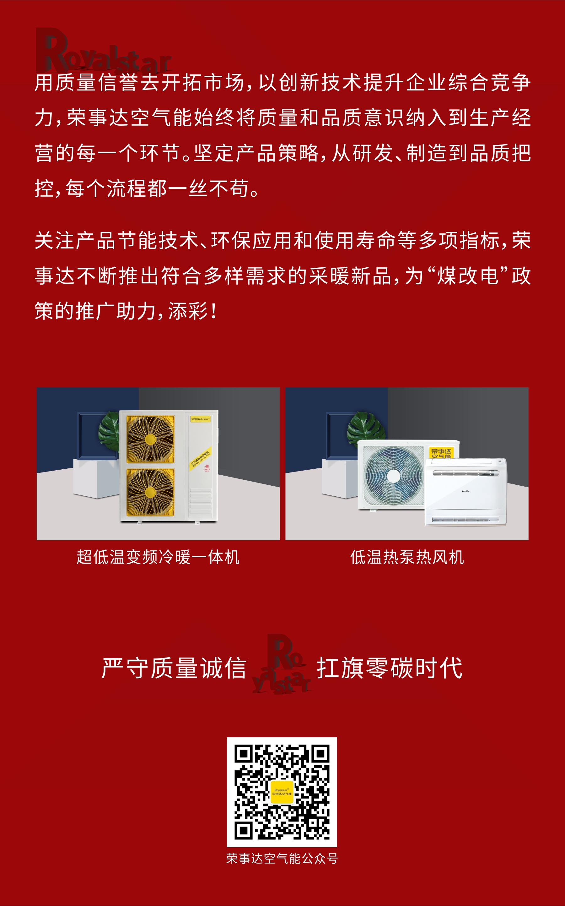 专注于中央热水、中央冷暖,荣事达空气能热泵产品足迹遍布全国,已为百万家庭提供家庭热水、为“煤改”区居民提供采暖,并在一些大型商改项目上得到广泛应用。