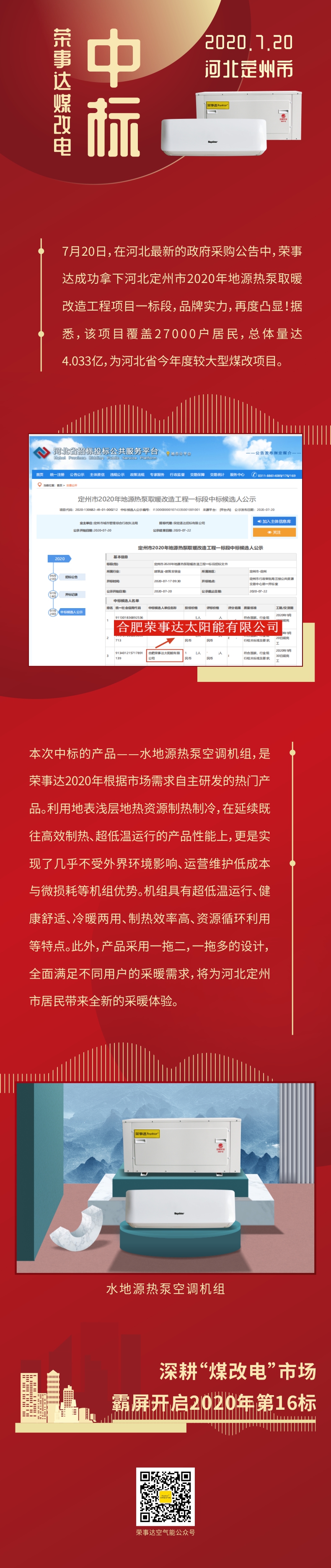 再扛鼎!荣事达中标河北定州市2020年地源热泵取暖改造工程