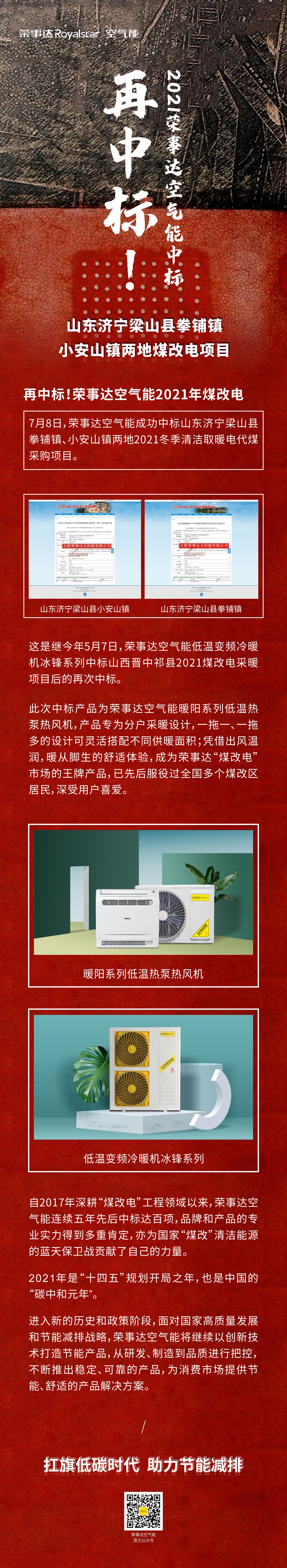 热度不减!荣事达空气能山东地区煤改电再中两标
