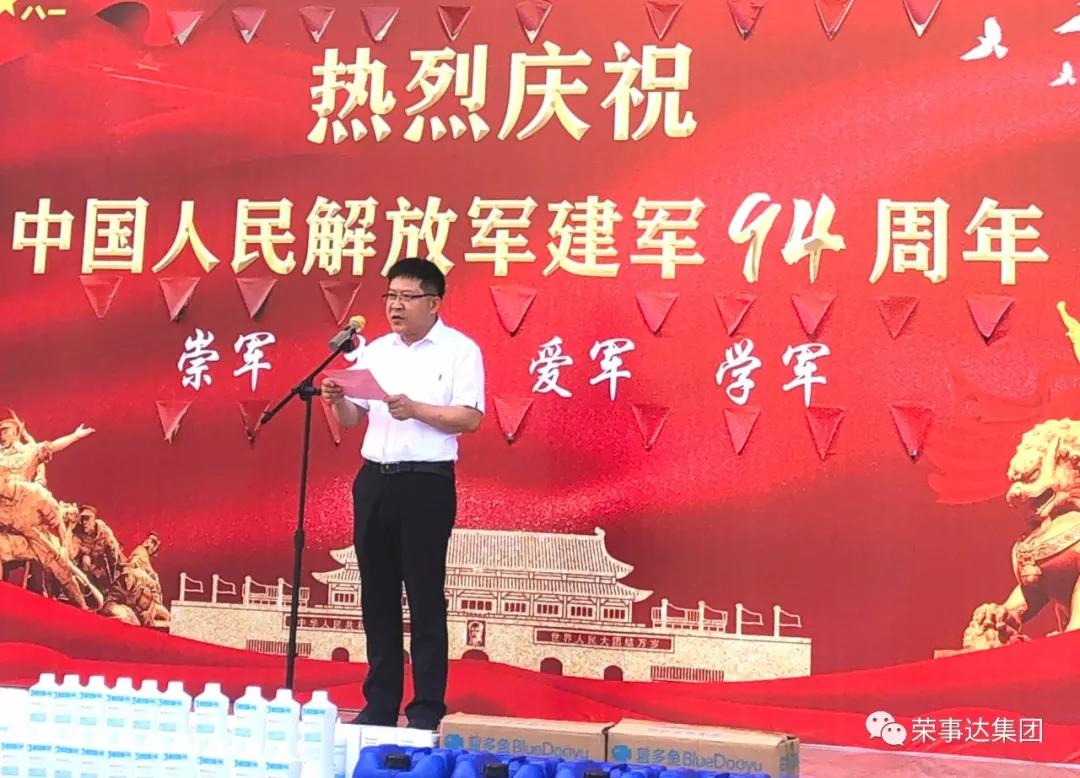 为纪念中国人民解放军建军94周年,弘扬拥军优属的光荣传统,8月1日,滁州市民政局党组书记、局长汪国玲,滁州市退役军人事务局党组书记、局长丁勇带队看望慰问滁州市光荣院的老战士们,向全体老战士以及家属致以节日的问候和崇高的敬意。荣事达集团助理总裁潘启文、荣事达生态圈合作客户滁州市蓝鱼环保科技有限公司董事长吕刚参与了本次慰问活动。