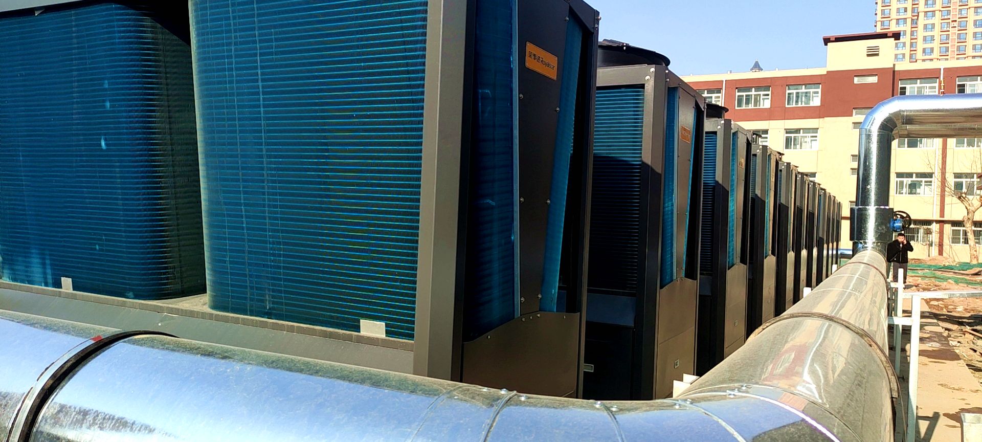 经过与校方的沟通,设计方案敲定后,荣事达空气能总部迅速发货,驻当地团队闻风而动,立马赶赴现场筹划前期的准备工作。随着安装地点的确认与主机运送到位,荣事达空气能的施工团队正式动工,经过三个多月的安装调试,最终赶在2021年冬季到来之前保质保量、提前完成了任务。