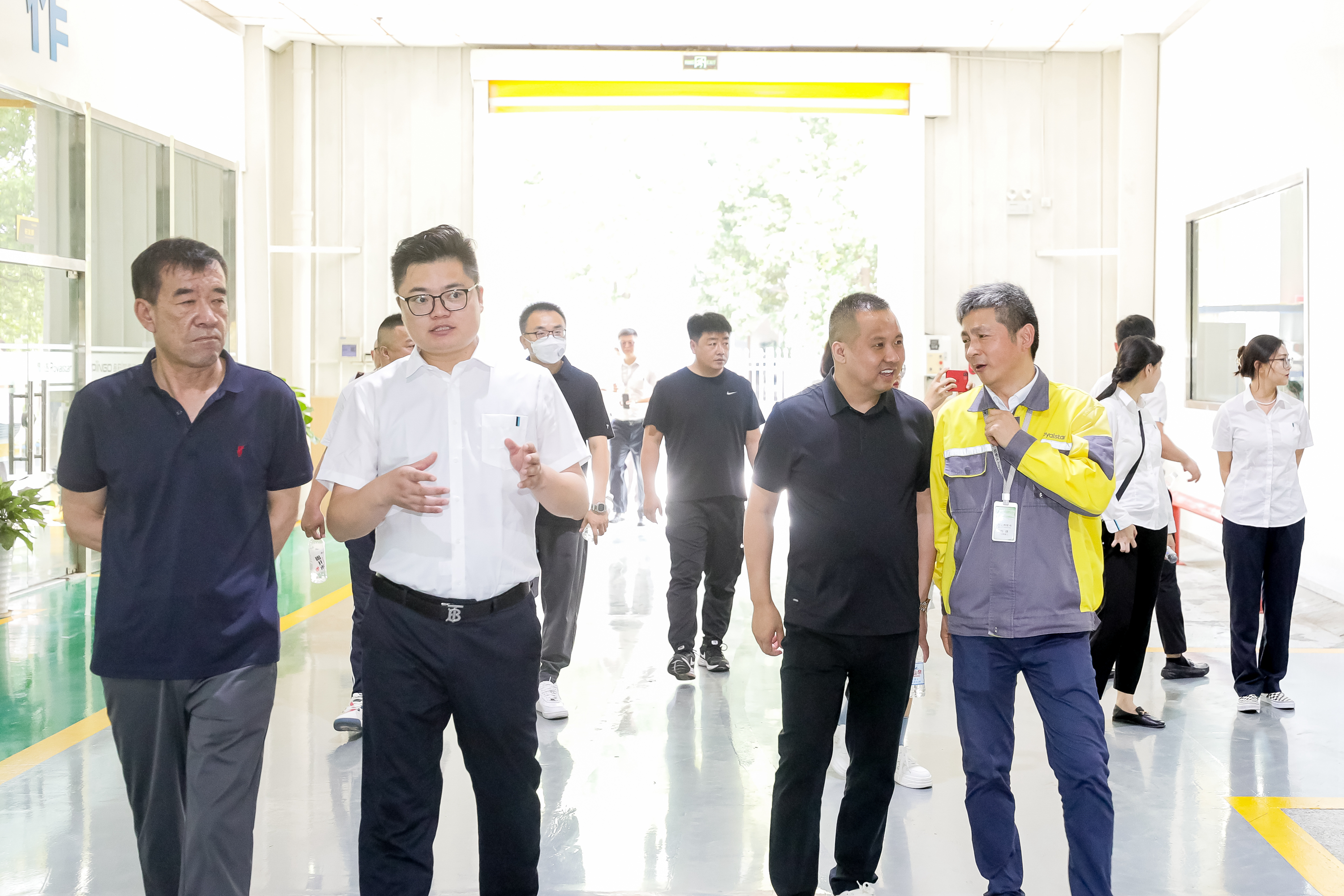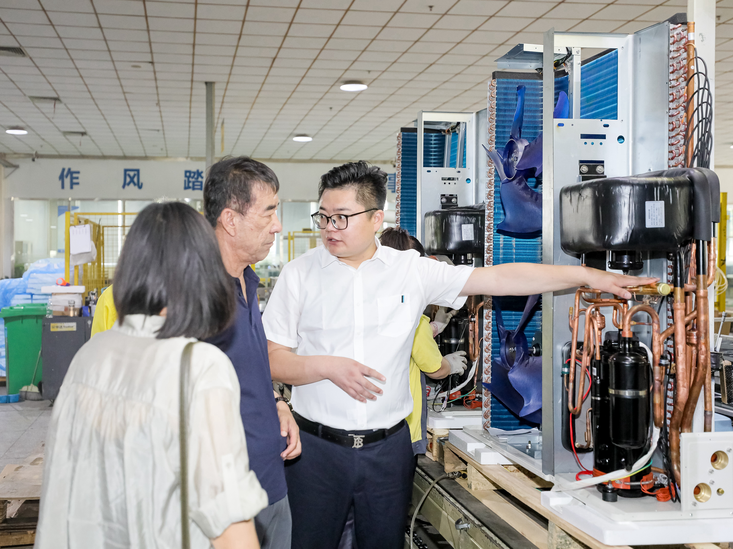 从侧门出服务平台,映入眼帘的便是荣事达空气能工厂。荣事达空气能工厂负责人白礼鹏对领导们的到来表示热烈欢迎,陪同一行人重点参观工厂自动化生产线以及超低温实验室的运作。